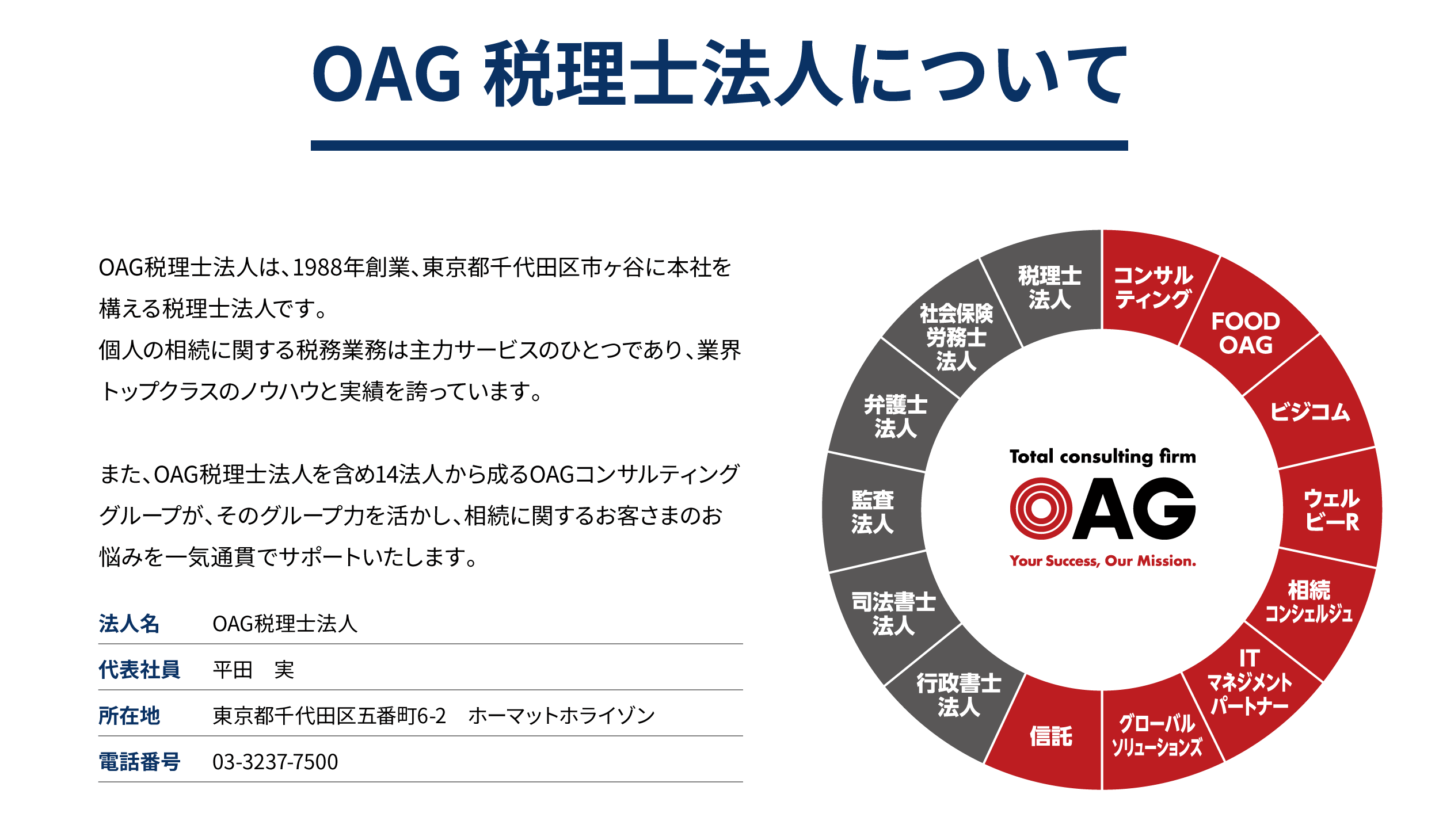 このような場合は一般的に自宅は配偶者が相続するか、被相続人と同居されていたお子さんが相続することになり、残りの遺産を他の方が相続することが多いです。ただ、それでも調整がうまくつかない場合は、相続された方が他の方に 何がしかの金銭(代償金)を支払うこともあります。また、自宅の敷地が広い場合は、その一部を売却し、その売却代金を、自宅を相続された以外の方で分けるようなことも考えられます。いずれにしても、遺産の分割の方法に工夫が必要となってきます。OAGコンサルティンググループは国税OBが設立したグループであり、国税OBの税理士が数多く在籍していますので、さまざまなケースでのノウハウが豊富にあります。
