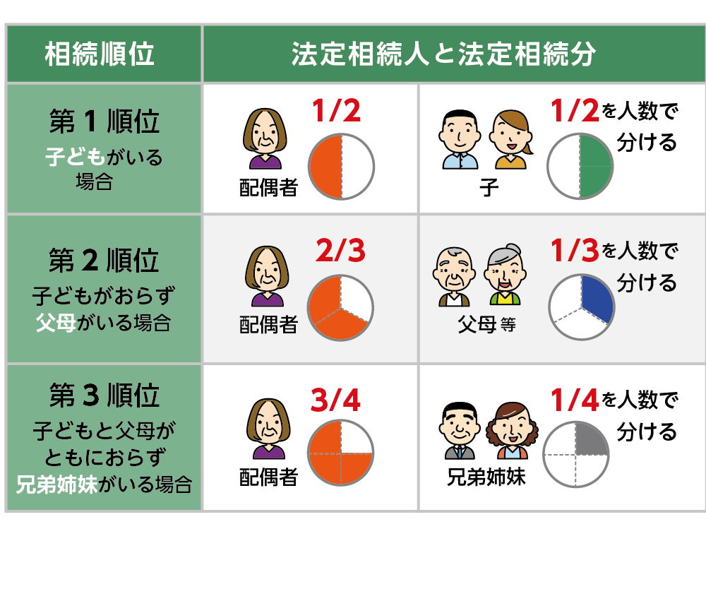 ※相続順位と法定相続人の相続割合について詳しくは、こちらを参考にしてください。