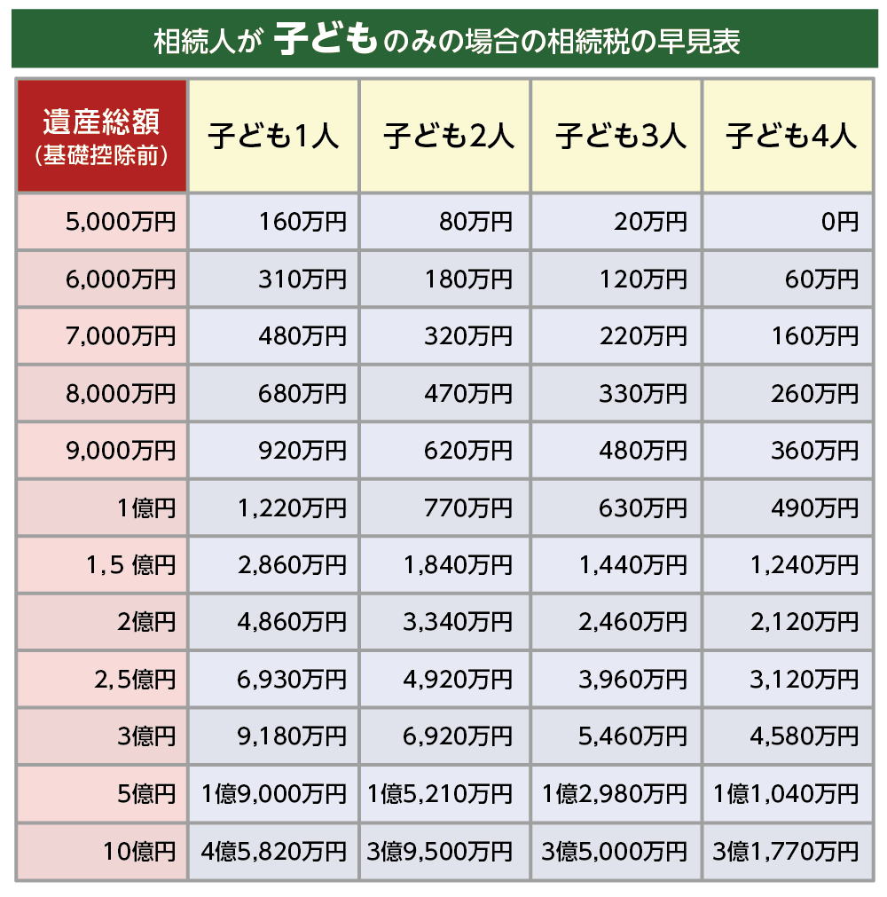 相続税早見表の見方と使い方|配偶者・子ども別ケースで概算を確認