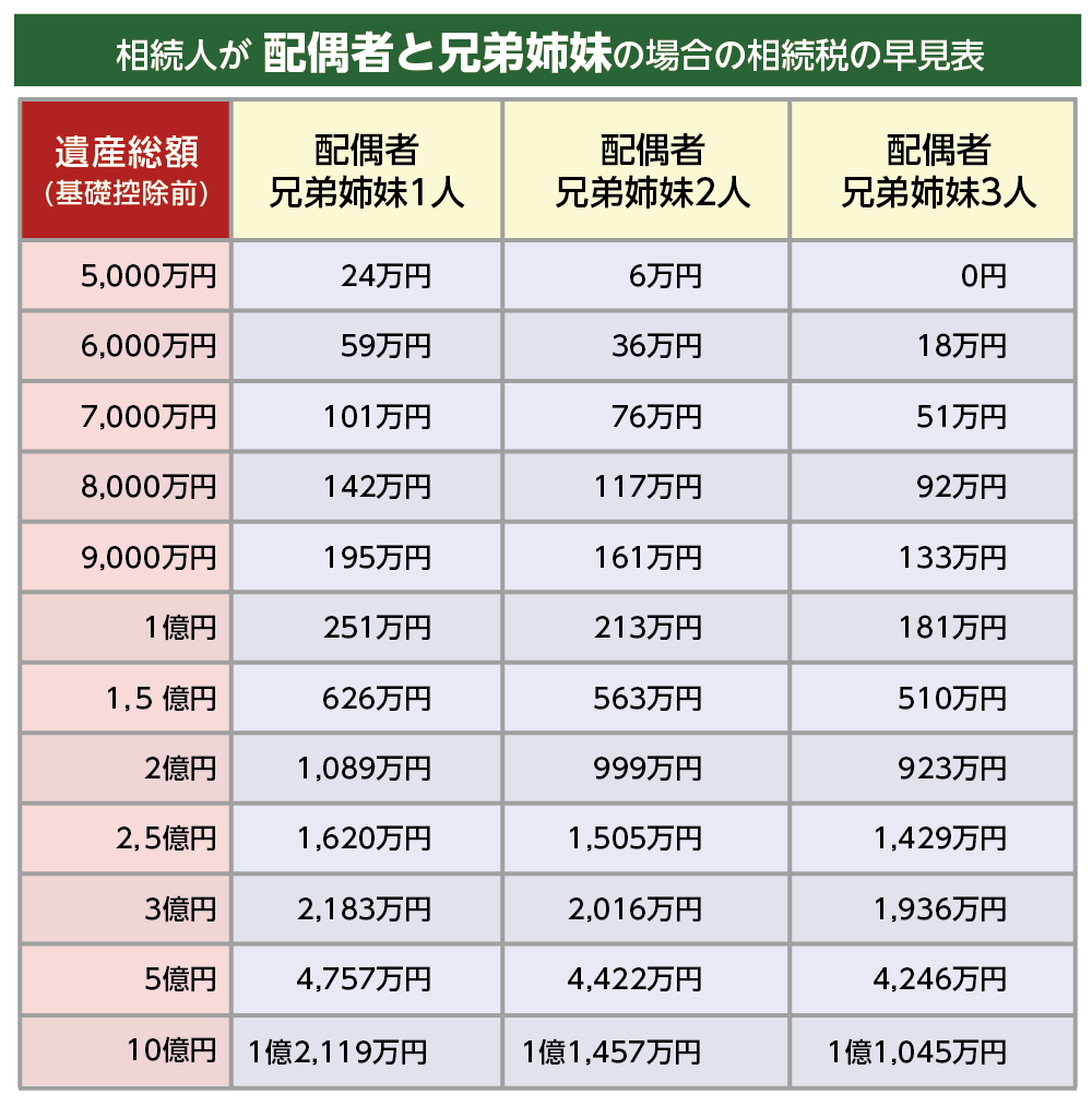 3-4. 配偶者と兄弟姉妹が相続人の場合の早見表