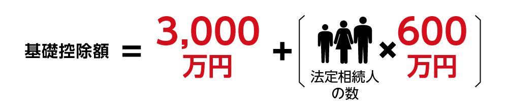 基礎控除額は、3,000万円 + (600万円 × 法定相続人の数)という計算式で求められます。