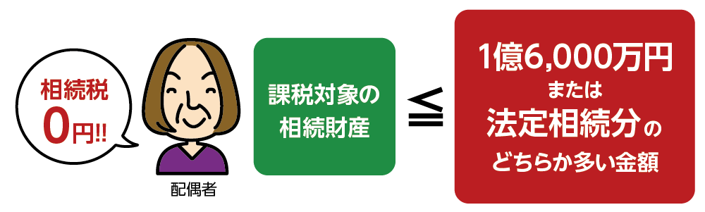 このまま計算すると課税対象になりますが、実際には配偶者が相続する場合には大きな税額軽減の制度(※配偶者控除)が用意されています。