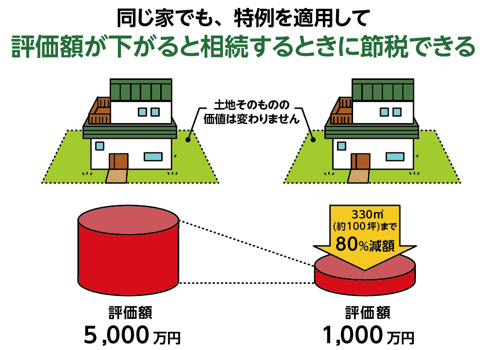 亡くなった方が居住していた自宅の敷地や、事業に使っていた土地については、最大80%まで評価額を減額できます。