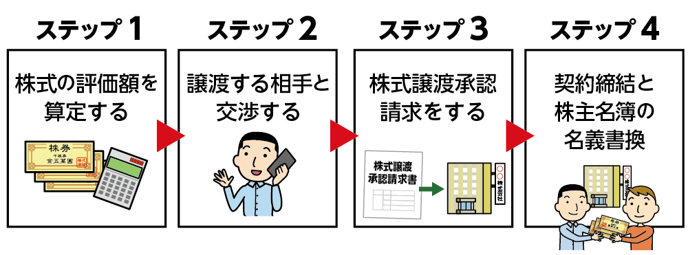 非上場株式を譲渡する際は、上場株式のような市場での売買ができないため、以下のような特別な手続きを段階的に踏む必要があります。