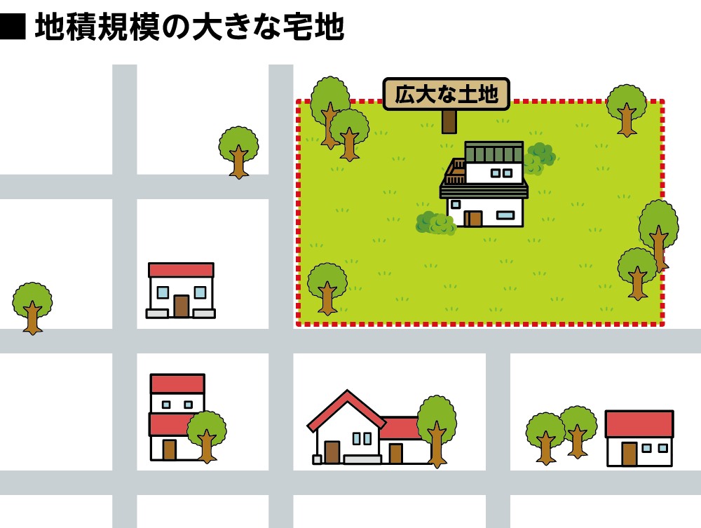 三大都市圏では500㎡以上、それ以外の地域では1,000㎡以上の宅地が「地積規模の大きな宅地」に該当します。
